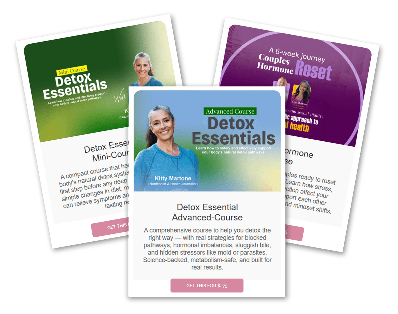 Whether you're just starting your detox journey or ready to go deeper, these courses are here to help you understand and restore your body’s natural healing systems, from foundational detox support to advanced hormone balancing and even a couples-based reset.