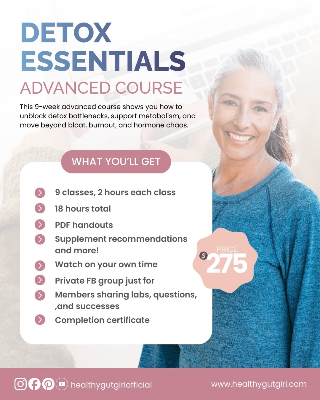 This course goes deeper than surface-level detox advice. You’ll learn why your body may be struggling to detox efficiently and how to support it safely and effectively using a structured, science-informed approach.